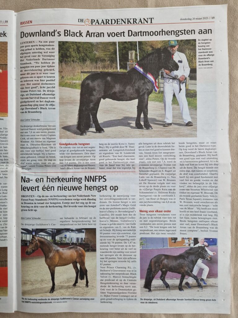 Artikel Paardenkrant september 2025; Centrale KeuringArtikel Paardenkrant februari 2025; HengstenkeuringArtikel Paardenkrant september 2024; Centrale KeuringArtikel Paardenkrant september 2023; Centrale KeuringArtikel Paardenkrant oktober 2022; HengstenkeuringArtikel Paardenkrant september 2022; Centrale KeuringArtikel Paardenkrant september 2021; Centrale Keuring